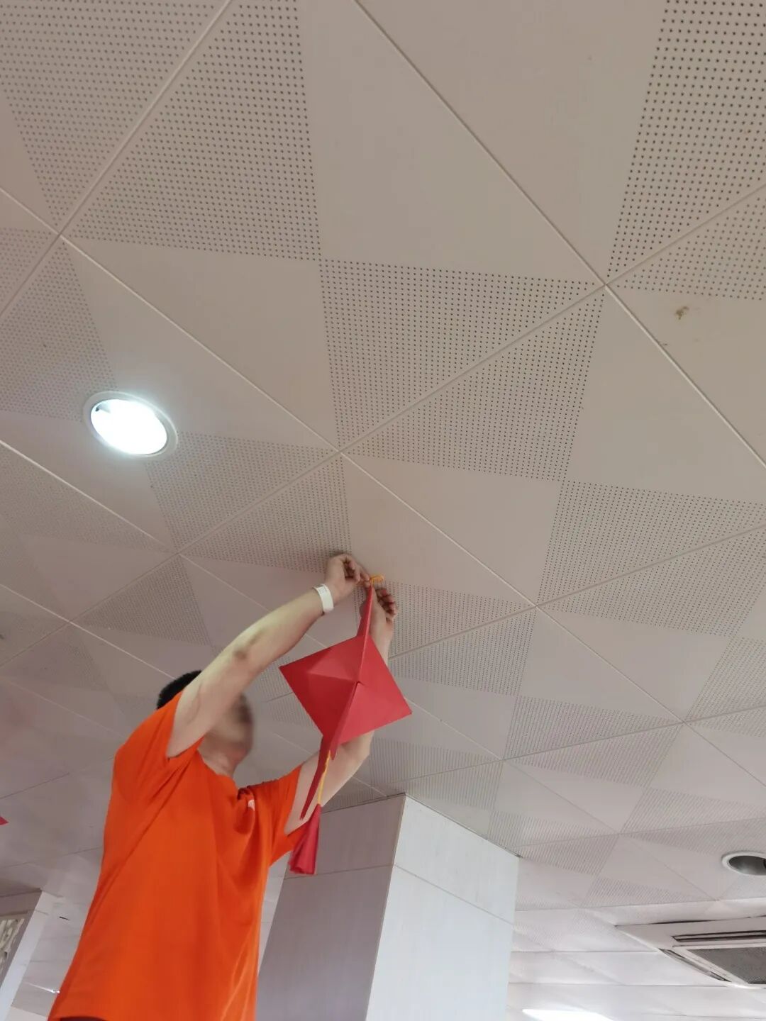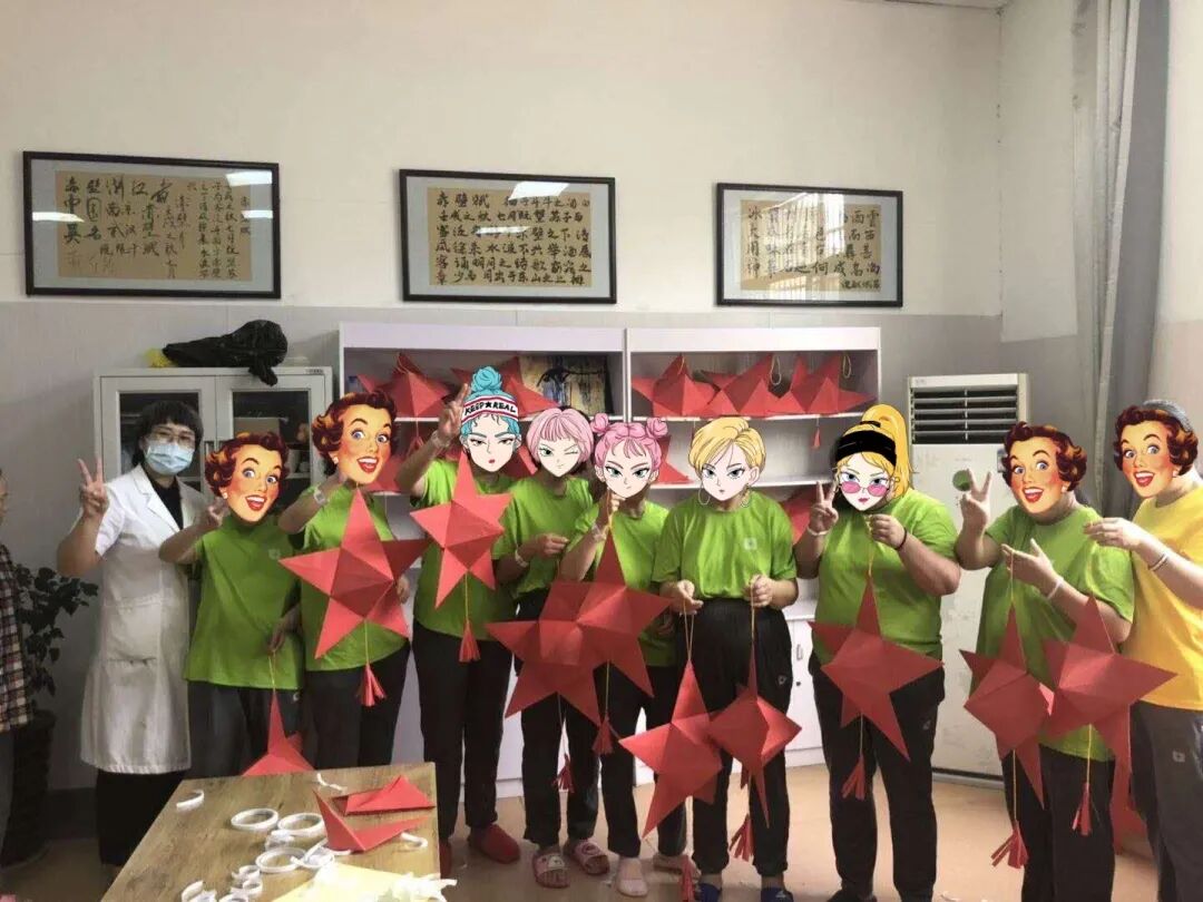 为了迎接国庆节的到来,康复科的同事指导病友们制作五角星灯笼,挂在病房里,一下子增添了节日的气氛,变得热热闹闹~